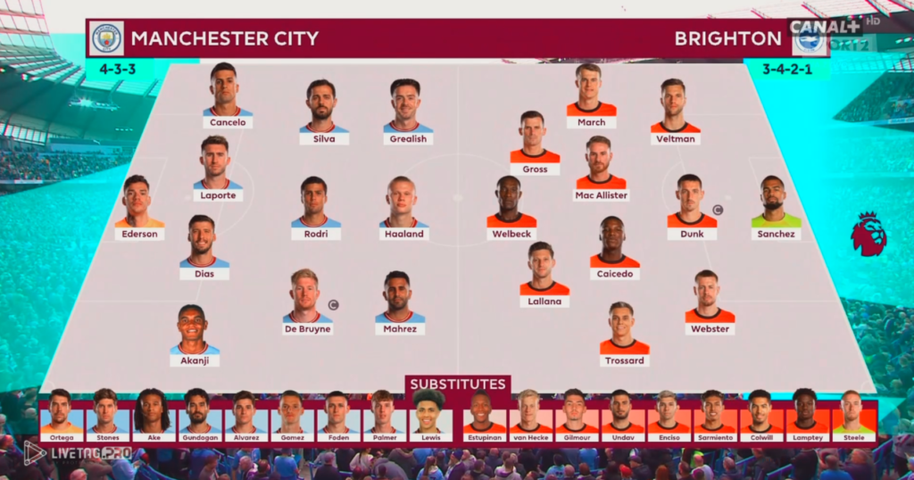 Obydwa zespoły wystąpiły w swoich optymalnych ustawieniach oraz personaliach Manchester City 1-4-3-3, zespół Brighton 1-3-4-2-1.
