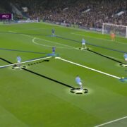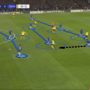Kontynuacja budowania ataku i cały zespół The Blues w systemie 1-4-4-2. Zasady w obronie widać doskonale przy rotacji zawodników Liverpoolu. Każdy odpowiada za swoją pozycję. Do obniżającego Salaha wychodził BO, ale skrzydłowy (Hall) szedł za swoim zawodnikiem do końca (Milner).