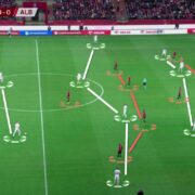 Napoli jest zespołem, który stara się budować atak na różne sposoby. Chce mijać pressing często środkowym sektorem z wykorzystaniem 3 pomocników i schodzących bliżej osi boiska bocznych obrońców. W tym spotkaniu Milan chciał mocno zabezpieczyć sektor środkowy. Ustawienie 1-4-2-3-1 pozwoliło zbudować przewagę liczebną w tej kluczowej dla meczu przestrzeni. Milan w pierwszych 20 minutach robił wszystko, aby „wygrać” środek boiska. Tu genialną robotę wykonał defensywny pomocnik – Sandro Tonali (5 odbiorów). Neapol został zmuszony do mijania pressingu bocznymi sektorami. W kolejnym spotkaniu ma pomysł na wykorzystanie współpracy bocznych obrońców i skrzydłowych w budowaniu ataku. Rotacje zawodników z pozycji 2-7 oraz 3-11 mają na celu ściągnięcie do środka bocznych pomocników Milanu i stworzenie przestrzeni dla skrzydłowych do pojedynku 1×1.