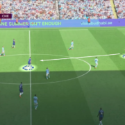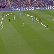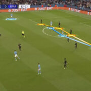 Podobnie jak przy bramce na 1:0, gospodarze często przeciągali otwarcie i budowanie gry, aby przyciągnąć gości na swoją połowę, chodziło o to by zminimalizować ryzyko utraty posiadanie w strefie niskiej oraz zapewnić dużo miejsca dla Haalanda oraz De Bruyne.